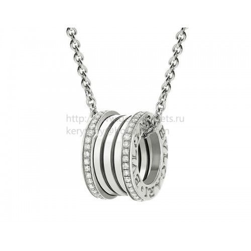 Bvlgari B.zero1 medál lánccal fehéraranyban, szélein pave gyémántokkal