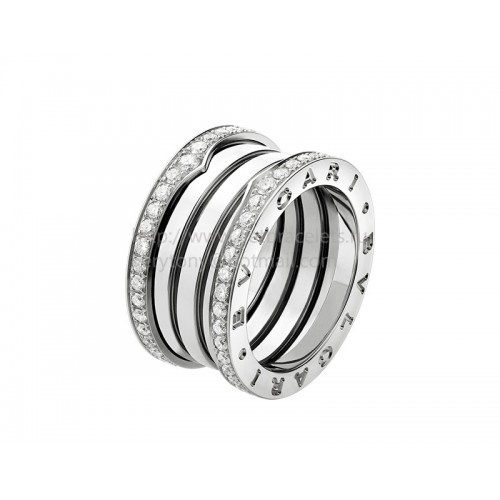 Bvlgari B.zero1 4-sávos fehérarany gyűrű pave gyémántokkal a szélein