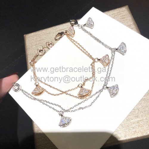 Bvlgari Divas Dream dupla láncos karkötő 4 motívummal, tele gyémántokkal, rozéarany és fehérarany