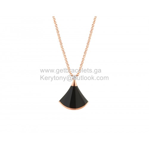Bvlgari Divas Dream kis nyaklánc ónixszal és 1 gyémánttal, rozéarany másolat