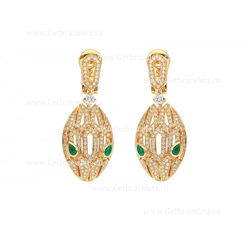 • Bvlgari Serpenti 18 karátos sárgaarany fülbevaló pave gyémántokkal és malachit szemekkel