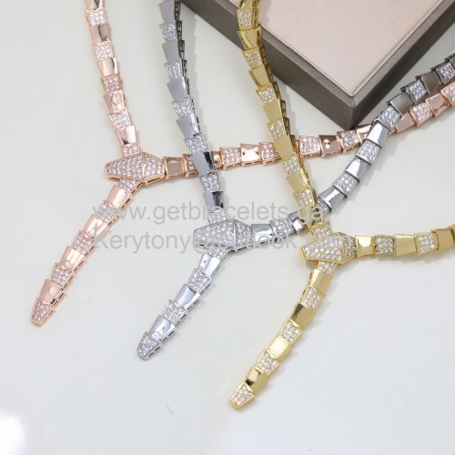 Bvlgari Serpenti nyaklánc teljes pave gyémántokkal rozéarany-sárgaarany-fehérarany