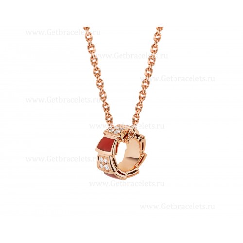 Bvlgari Serpenti Viper 18 karátos rozéarany nyaklánc karneol elemekkel és pave gyémántokkal a medálon