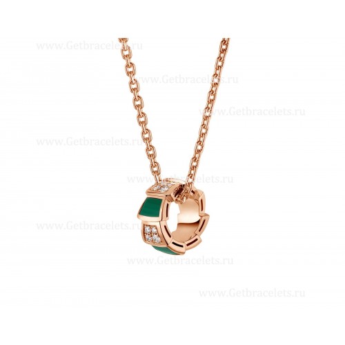 • Bvlgari Serpenti Viper 18 karátos rozéarany nyaklánc malachit elemekkel és pave gyémántokkal a medálon