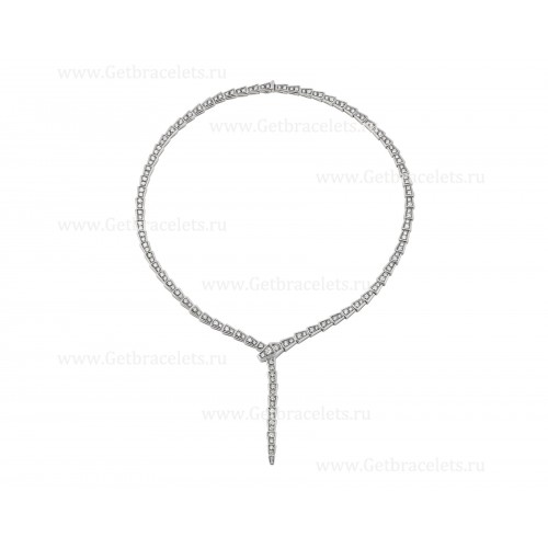 Bvlgari Serpenti Viper Slim nyaklánc 18 karátos fehéraranyból és teljes pave gyémántokból