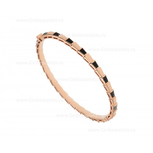 Bvlgari Serpenti Viper 18 karátos rozéarany vékony karkötő ónix elemekkel