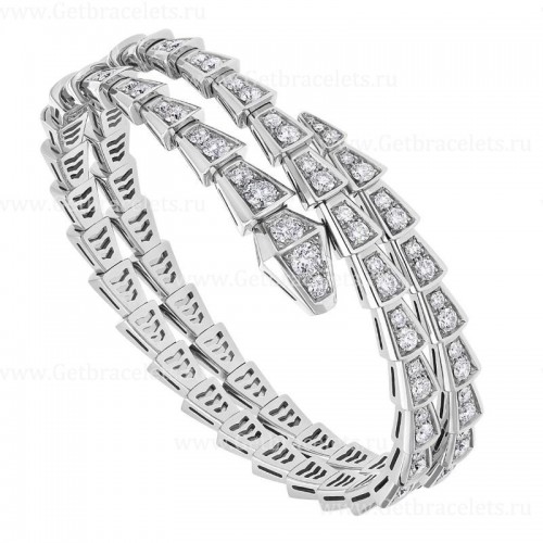 Bvlgari Serpenti Viper kéttekercses 18 karátos fehérarany karkötő pave gyémántokkal