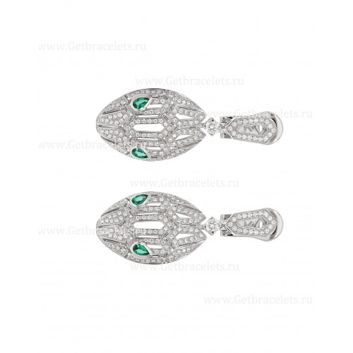 • Bvlgari Serpenti 18 karátos fehérarany fülbevaló pave gyémántokkal és smaragd szemekkel