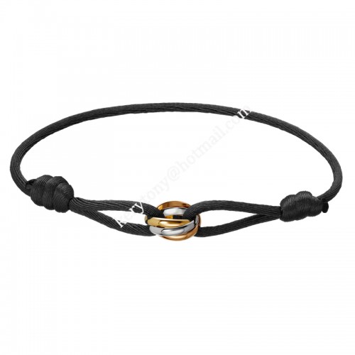 Cartier Trinity fekete kötél karkötő fehérarany/sárga isten/rozéarany