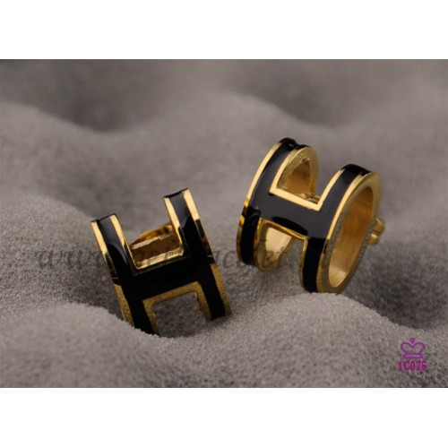 Hermès Pop H fekete fülbevaló sárgaaranyban