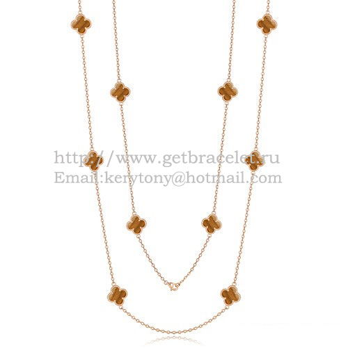 Van Cleef Arpels Alhambra nyaklánc rózsaszínarany 10 motívummal és tigrisszem gyöngyházzal