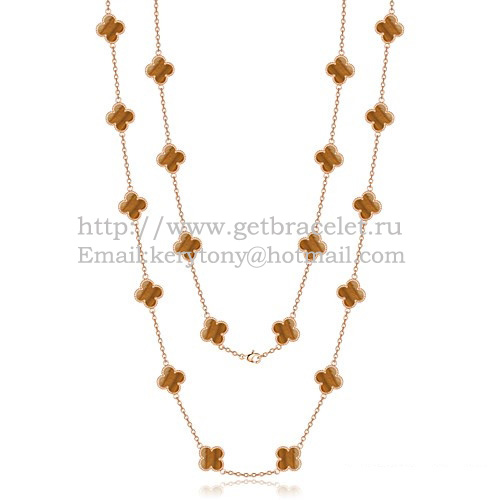 Van Cleef Arpels Alhambra nyaklánc rózsaszínarany 20 motívummal és tigrisszem gyöngyházzal