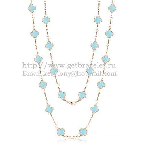 Van Cleef Arpels Alhambra nyaklánc rózsaszín arany 20 motívummal türkiz gyöngyházzal