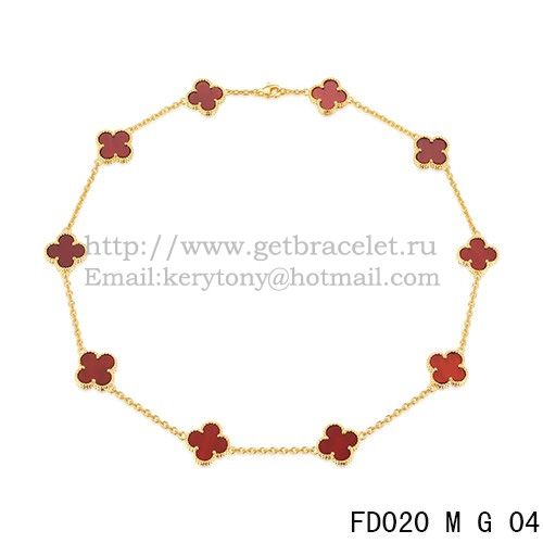 Van Cleef Arpels Alhambra nyaklánc sárgaarany 10 motívummal, karneol gyöngyház 45 cm