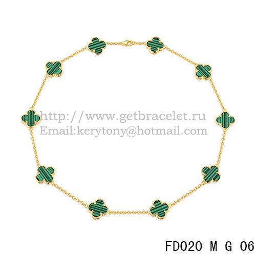 Van Cleef Arpels Alhambra nyaklánc sárgaarany 10 motívummal, malachit gyöngyház 45 cm