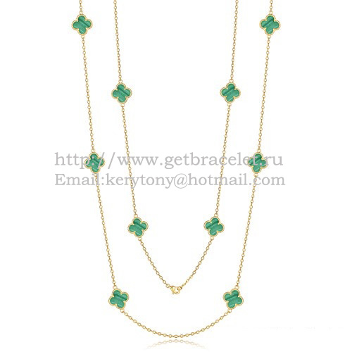 Van Cleef Arpels Alhambra nyaklánc sárgaarany 10 motívummal és malachit gyöngyház díszítéssel