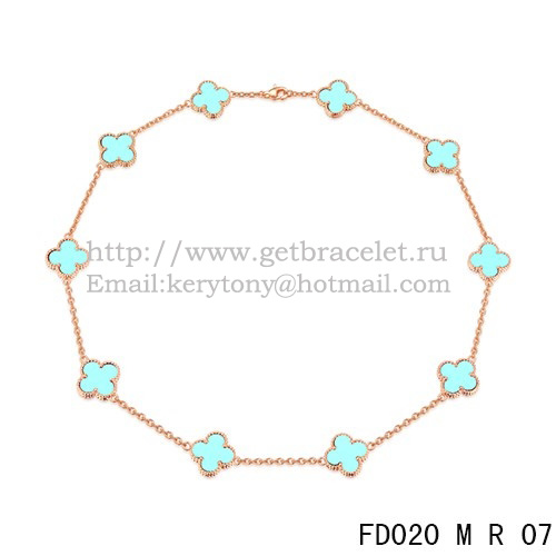 Van Cleef Arpels Alhambra nyaklánc rózsaszínarany 10 motívummal türkiz gyöngyház 45 cm