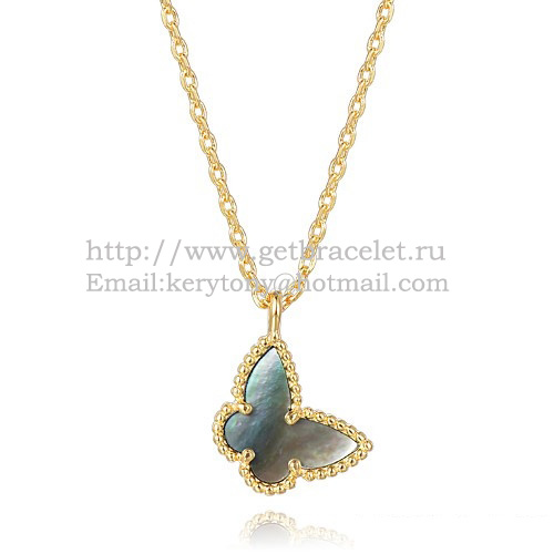 Van Cleef Arpels Lucky Alhambra pillangós nyaklánc sárgaaranyban és szürke gyöngyházfényű gyöngyökkel