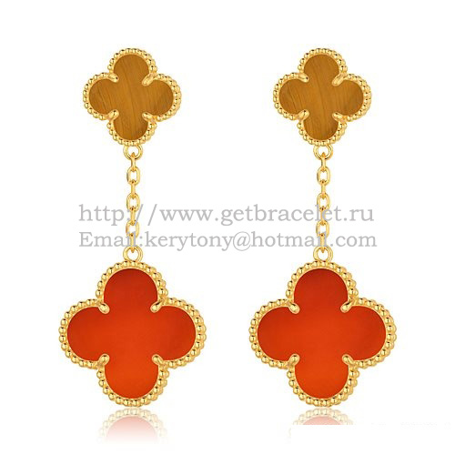 Van Cleef Arpels Magic Alhambra fülbevaló sárgaarany tigrisszem karneollal