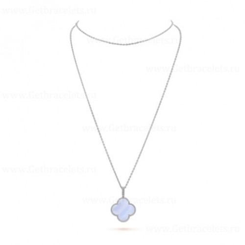 Van Cleef Arpels Magic Alhambra hosszú nyaklánc 1 motívumos medál fehérarany kalcedonnal