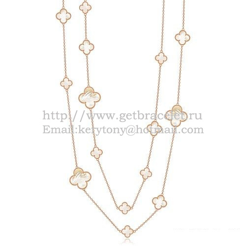 Van Cleef Arpels Magic Alhambra nyaklánc rózsaszínarany 16 motívummal és fehér gyöngyházzal