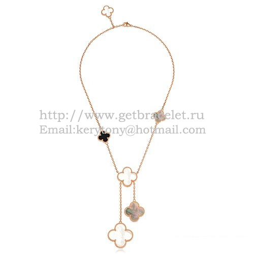 Van Cleef Arpels Magic Alhambra nyaklánc rózsaszín arany 6 motívummal és fehér szürke gyöngyházzal