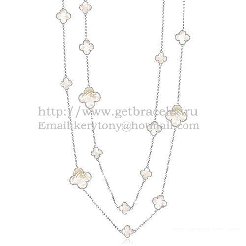Van Cleef Arpels Magic Alhambra nyaklánc fehérarany 16 motívummal és fehér gyöngyházzal