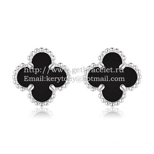 Van Cleef Arpels Sweet Alhambra fülbevaló fehérarany fekete ónix gyöngyházzal