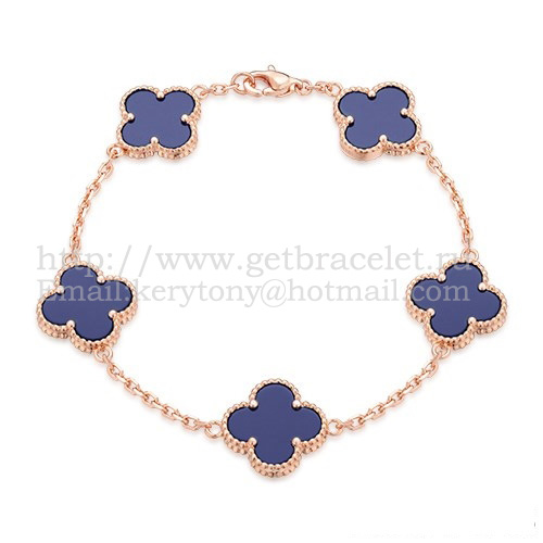 Van Cleef Arpels Alhambra karkötő 5 motívummal, rózsaszín arany és lápisz gyöngyház díszítéssel