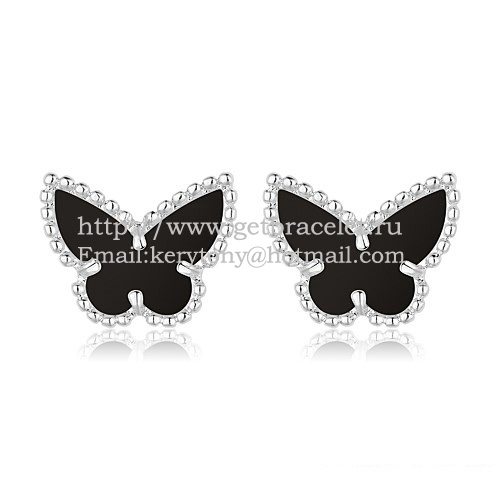 Van Cleef Arpels Édes Alhambra Pillangó Fülbevaló Fehérarany Fekete Ónix Gyöngyszíjjal