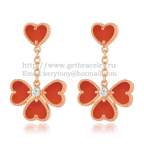Van Cleef Arpels Sweet Alhambra Effeuillage fülbevaló rózsaszínarany karneol gyöngyház díszítéssel