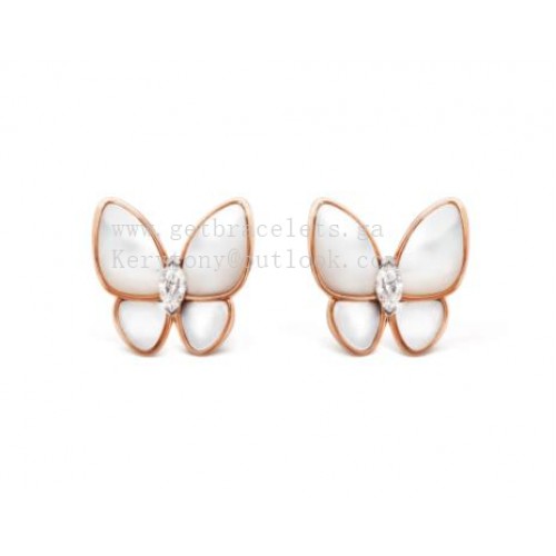 Van Cleef Arpels két pillangós gyöngyház fülbevaló gyémánttal, rozéarany